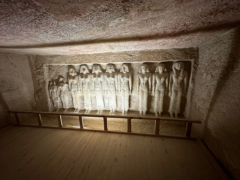 Next, the tomb of Meres Ankh III, daughter of Hetepheres. This had some amazing color, and is the only tomb on the plateau to feature statues of all women.