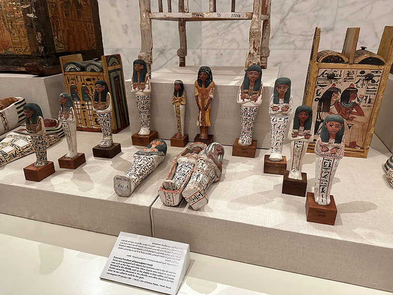 Upstairs, the exhibits start on the right with Egyptian prehistory, and go all the way around to modern Arabic times.